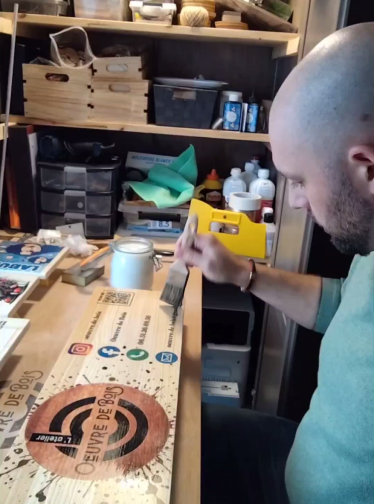 Je façonne, grave et transforme ce matériau noble pour donner vie à des objets uniques et personnalisés — du simple porte-clés au panneau décoratif sur mesure.